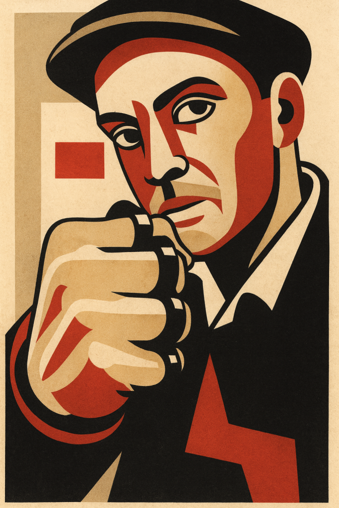 Er hebt die Faust. Schlagring am Finger.