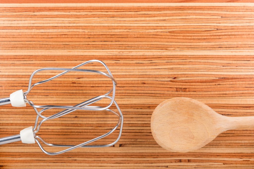 Wir brauchen eine große Schüssel, einen Handmixer mit Rührbesen und dann geht es los…